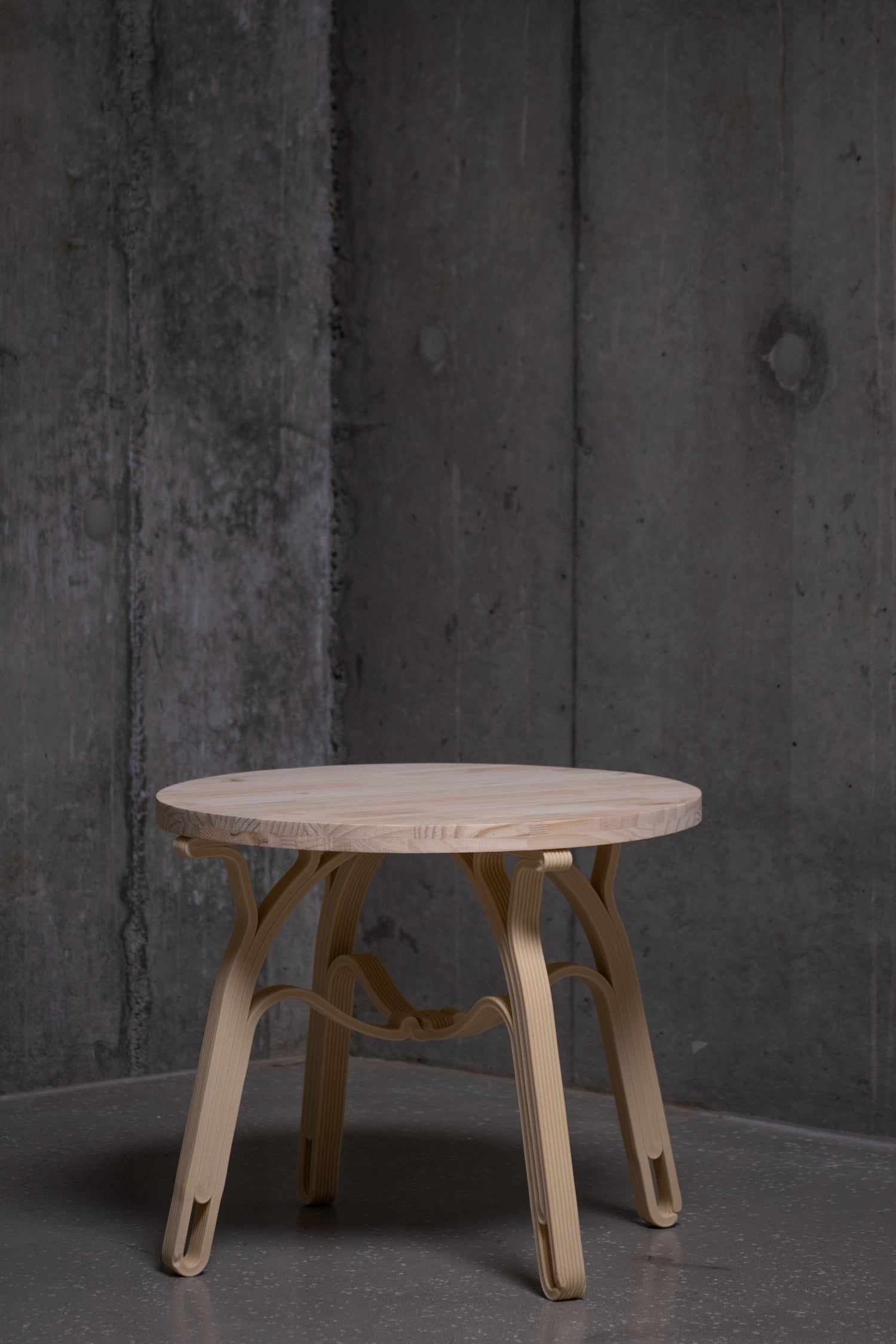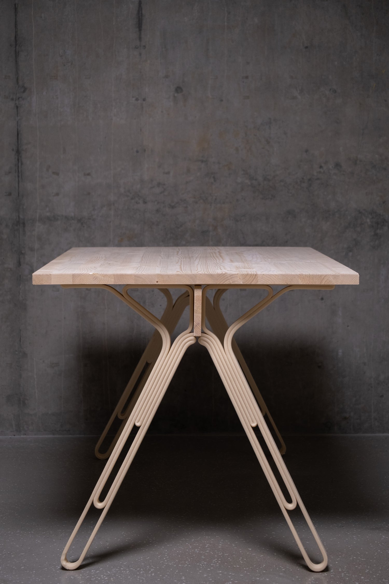 The COX-system explores the inherent flex imbedded in the thin 3D-printed PLA-members. The parts have similar traits to bentwood which enables the table base to interlocks without the need of screws.